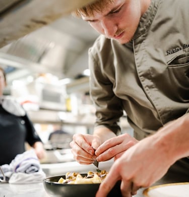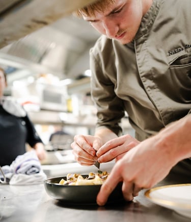 Mit gerade einmal 21 Jahren zählt Niklas zu den jüngsten Küchenchefs Oberösterreichs. In der Tante Käthe Linz leitet er die À-la-carte-Küche und bringt frische Ideen, Präzision und Leidenschaft auf jeden Teller.